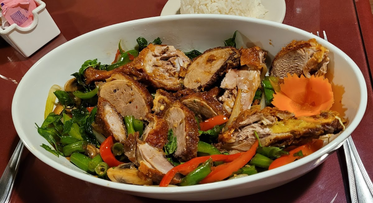 Love this place! The atmosphere is quiet, clean, and the waiters and receptionist are very polite and informative. I would recommend the pho, crispy basil duck, beef Panang curry, Pad Thai, drunken noodles, and many other dishes! All the food is exceptional and fresh, I haven’t gotten a dish here that I haven’t enjoyed. They offer mild and spicy options too. Definitely one of the best local food spots here in Asheboro.