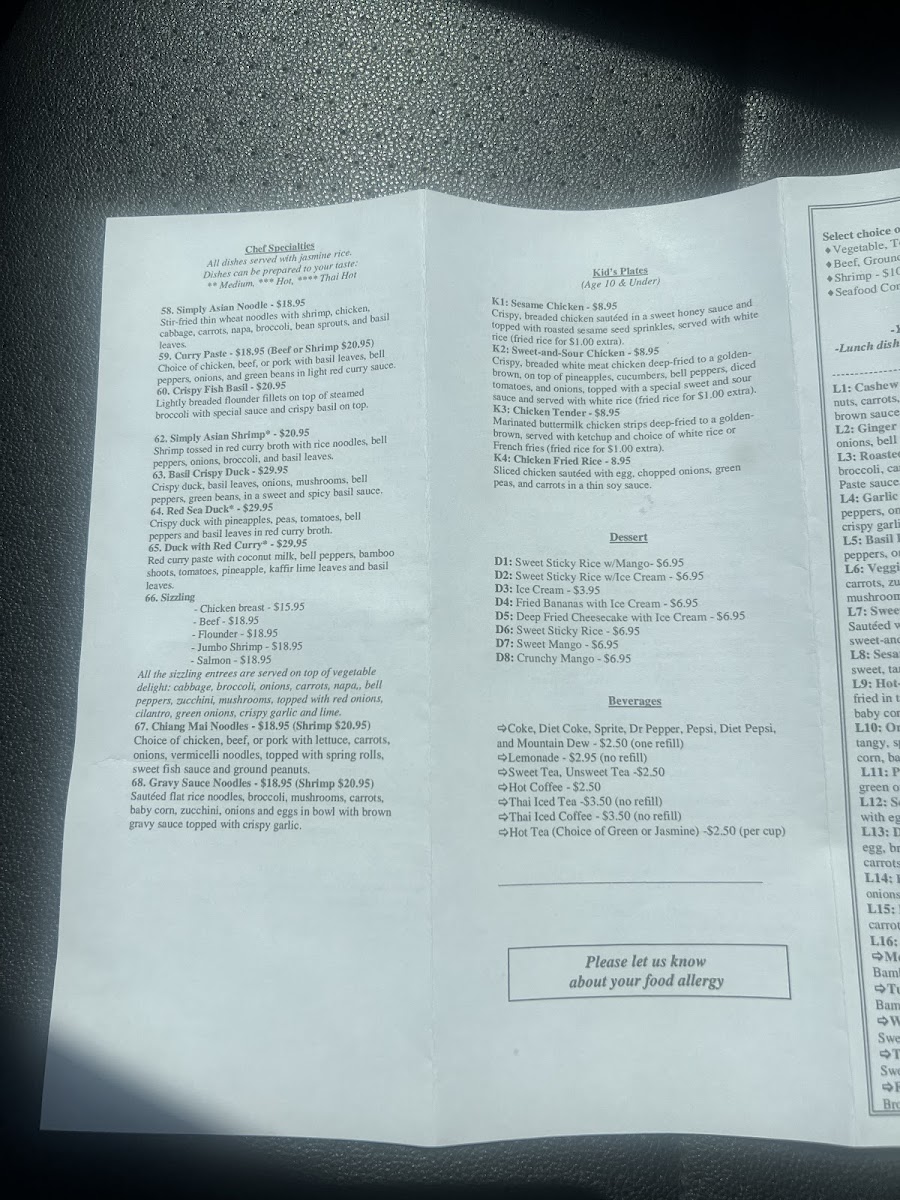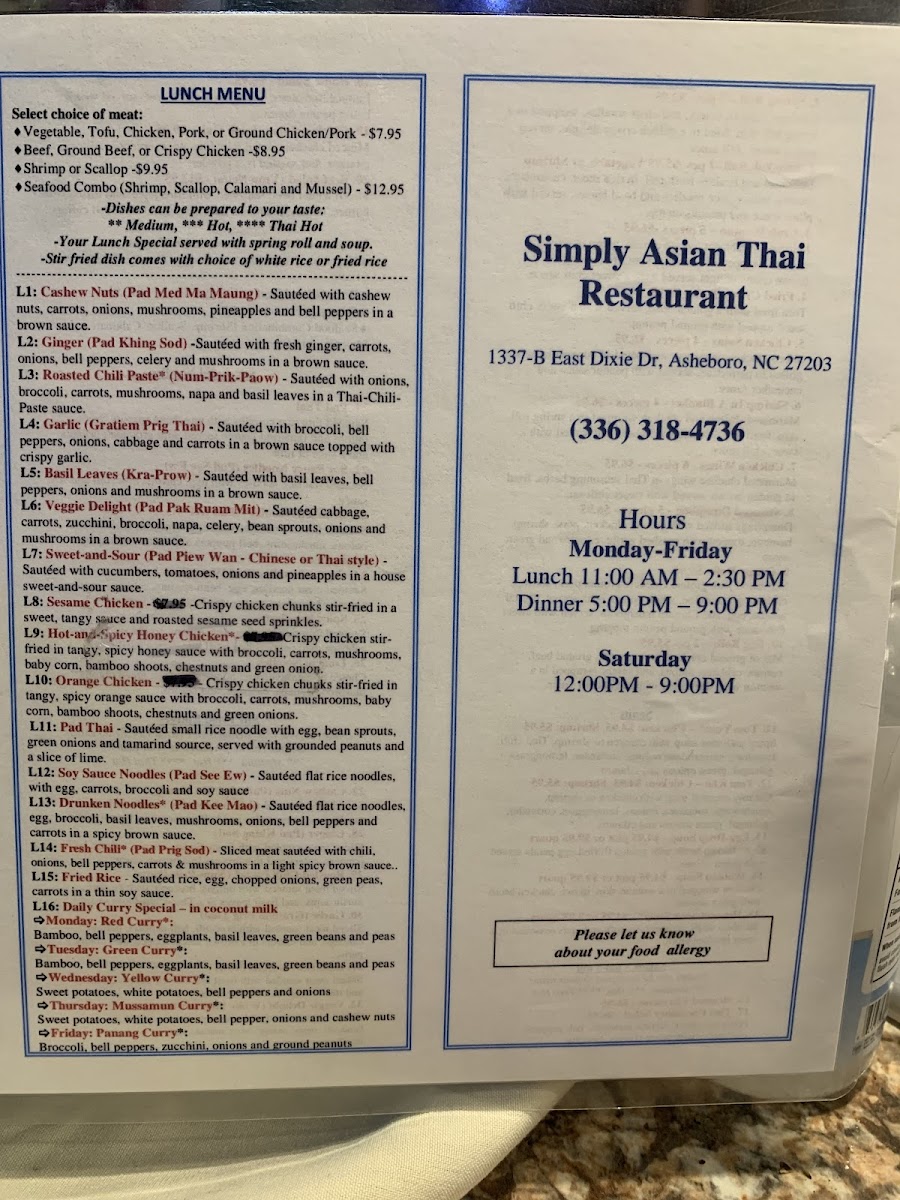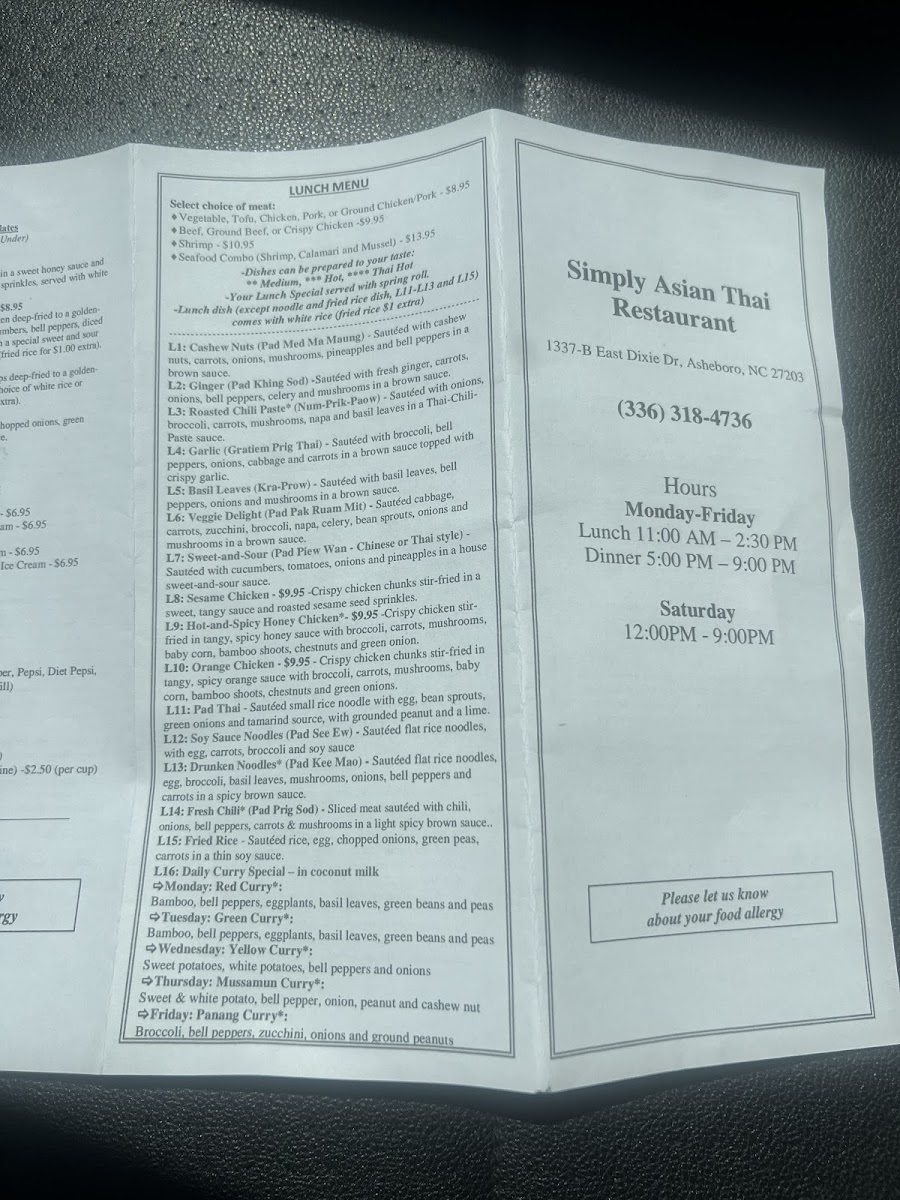 Simply Asian Thai Restaurant Menu